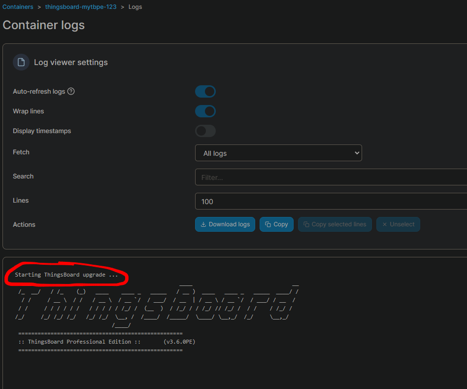 Um Thingsboard zu upgraden, muss das Start-CMD von start-tb.sh zu upgrade-tb.sh geändert werden. Mit einer 'normalen' docker-compose.yaml gibt man folgende Befehle ein: