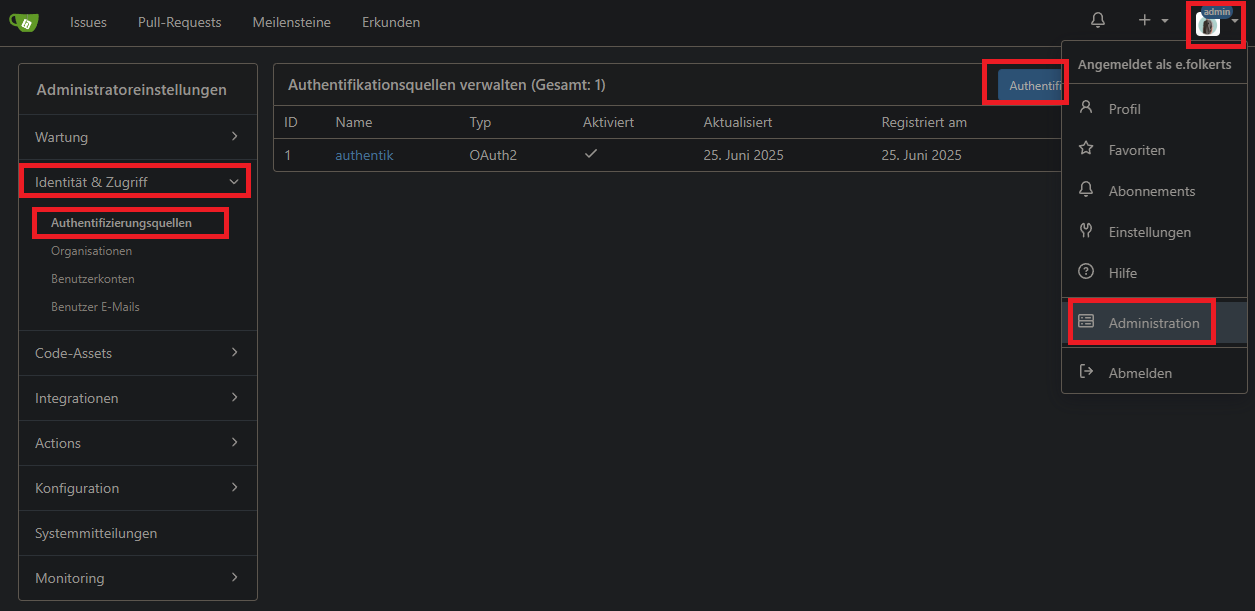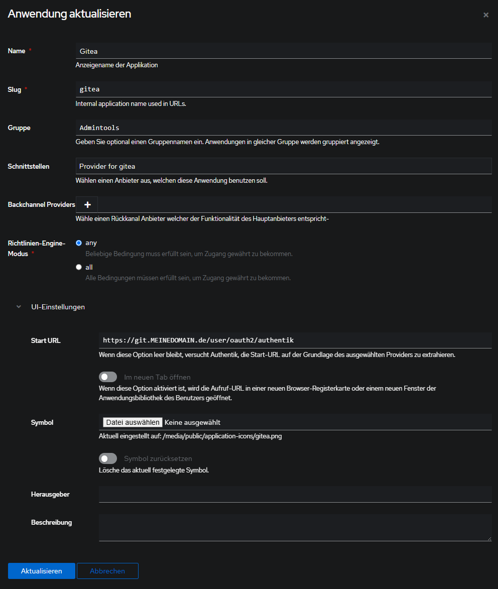 Anwendungen > Provider > gitea