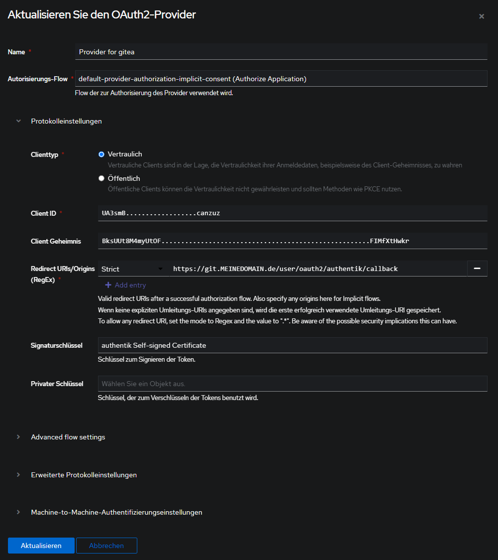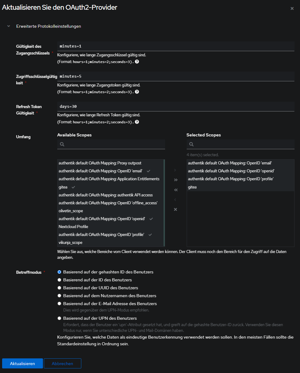 OIDC-Settings in Authentik