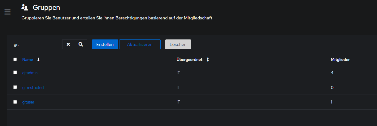 gitea scope für gruppen gituser, gitadmin und gitrestricted