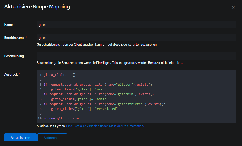 gitea_claims["gitea"]= "user"