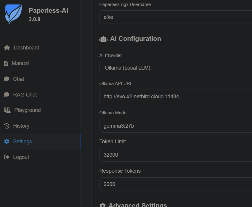paperless-ai Konfiguration mit Ollama: