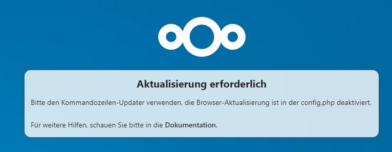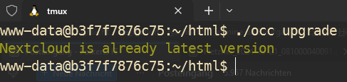 Wenn ein neues Nextcloud Docker-Image gezogen wurde, muss die Nextcloud-Instanz evtl. über die CLI geupdatet werden.