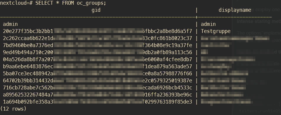 Oder über occ und dann die ID der Benutzer abgleichen und Gruppenbezeichnungen raten: