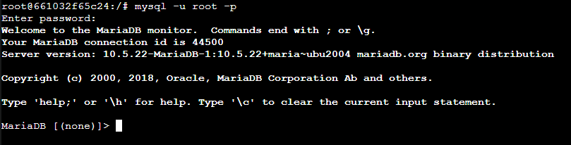 danach ist man in der mariadb:
