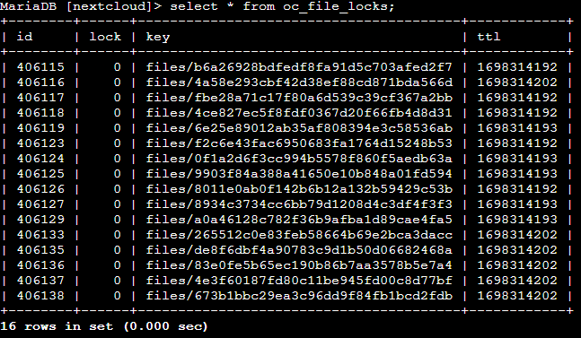 SELECT * FROM oc_file_locks