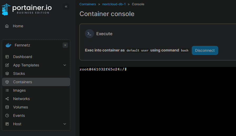 1) in MariaDB Container mit bash gehen: