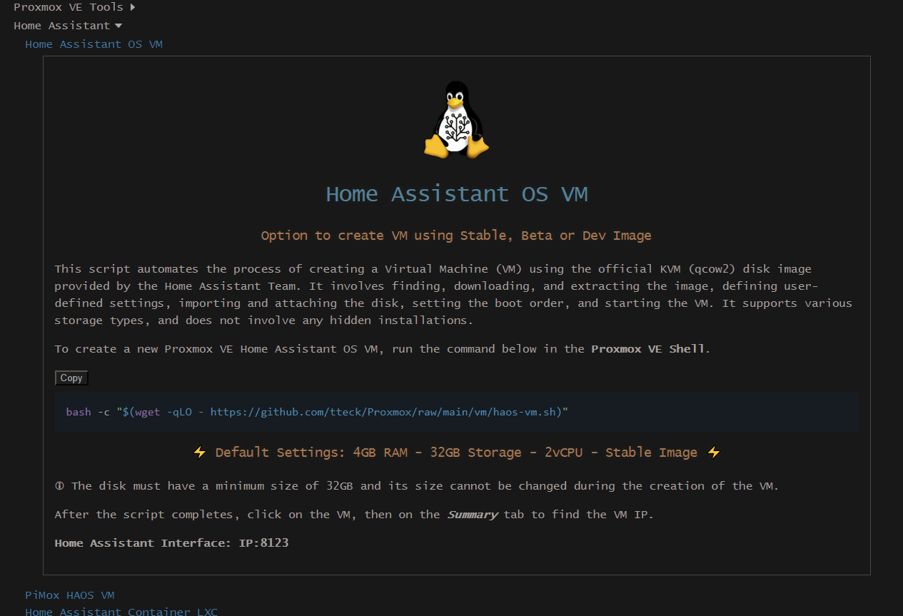 bash -c "$(wget -qLO - https://github.com/tteck/Proxmox/raw/main/vm/haos-vm.sh)"