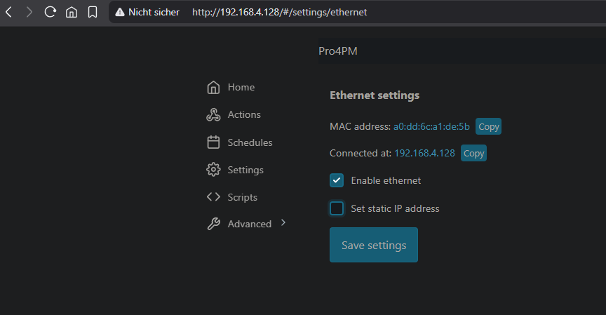 Shelly von dynamische IP-Adresse auf feste umstellen: