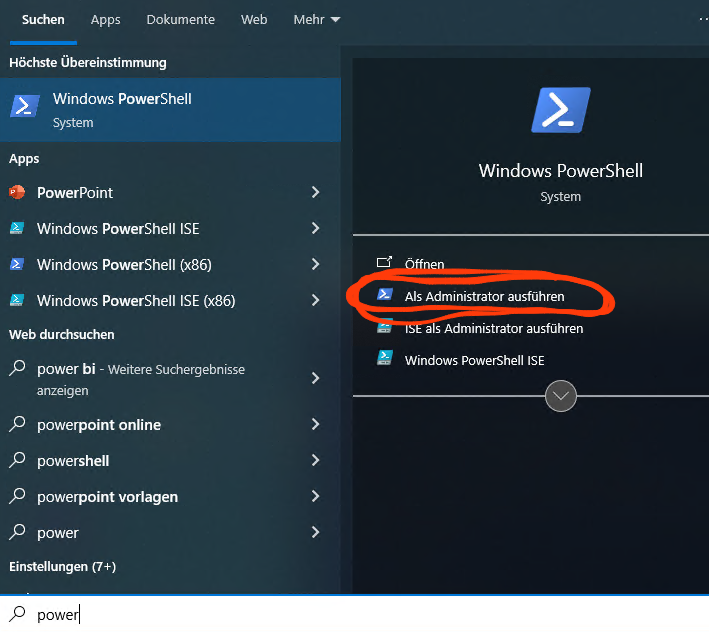 Zuerst ein Powershell Skript mit folgendem Inhalt (kopiert aus dem learn.microsoft Link) erstellen